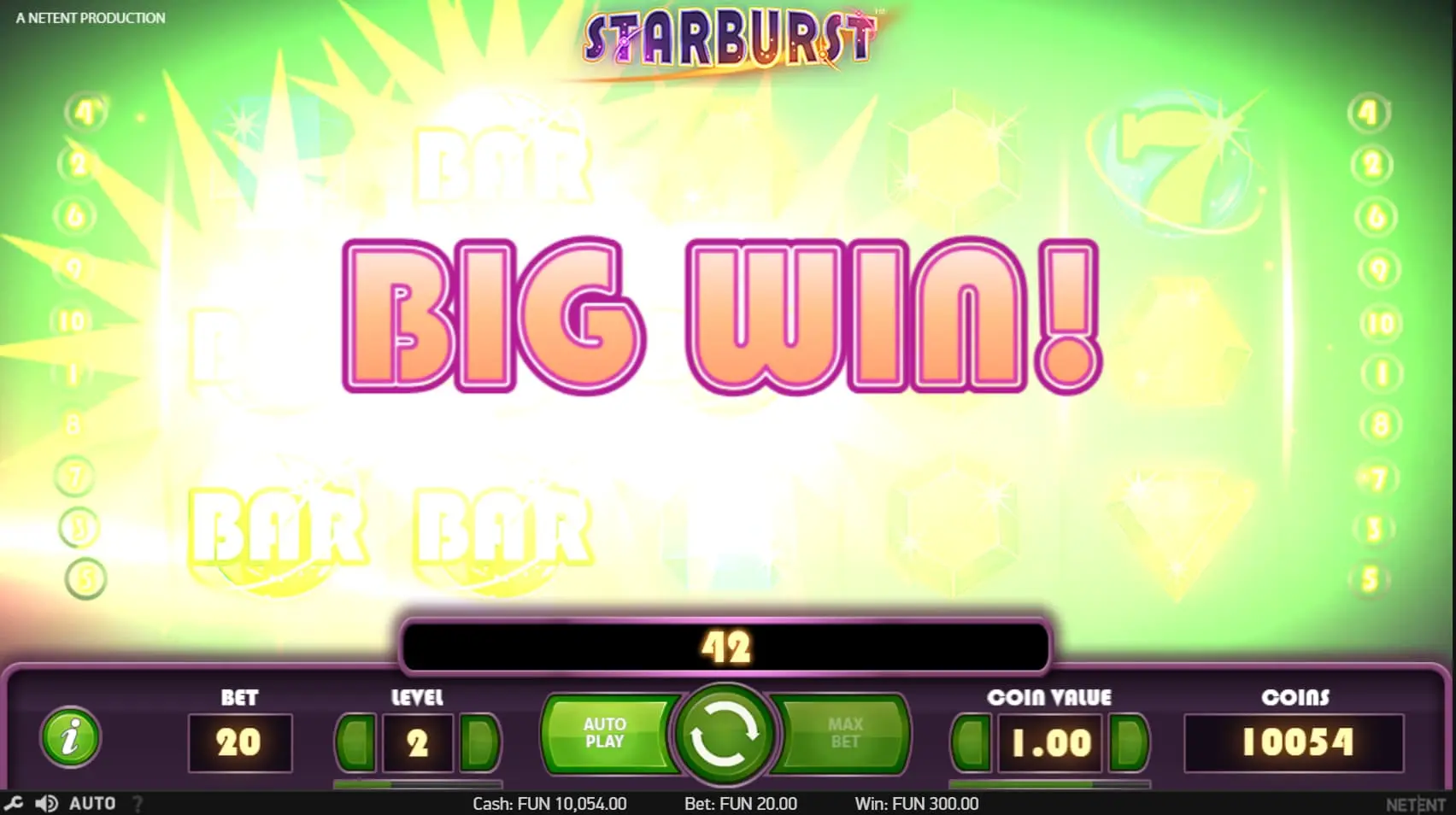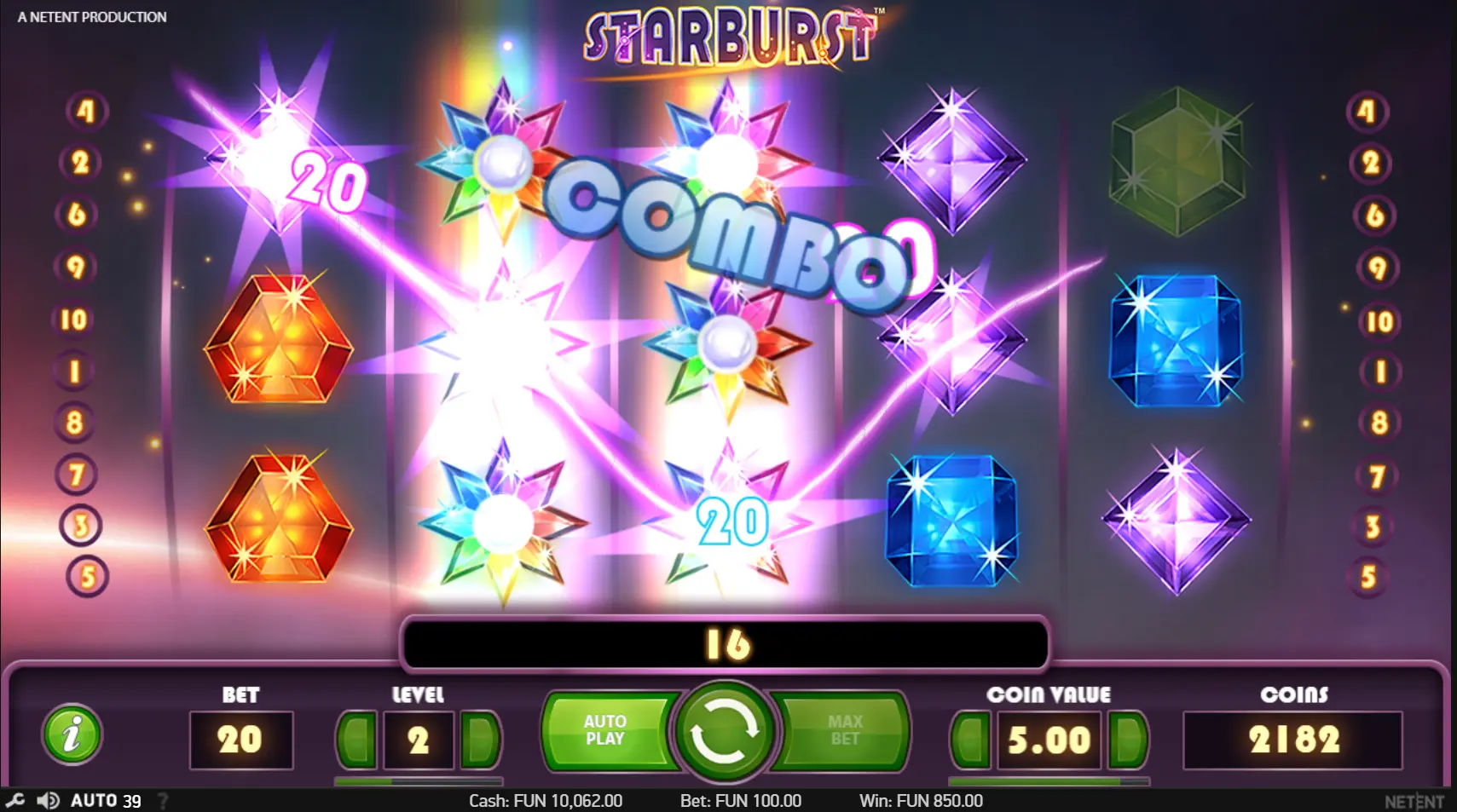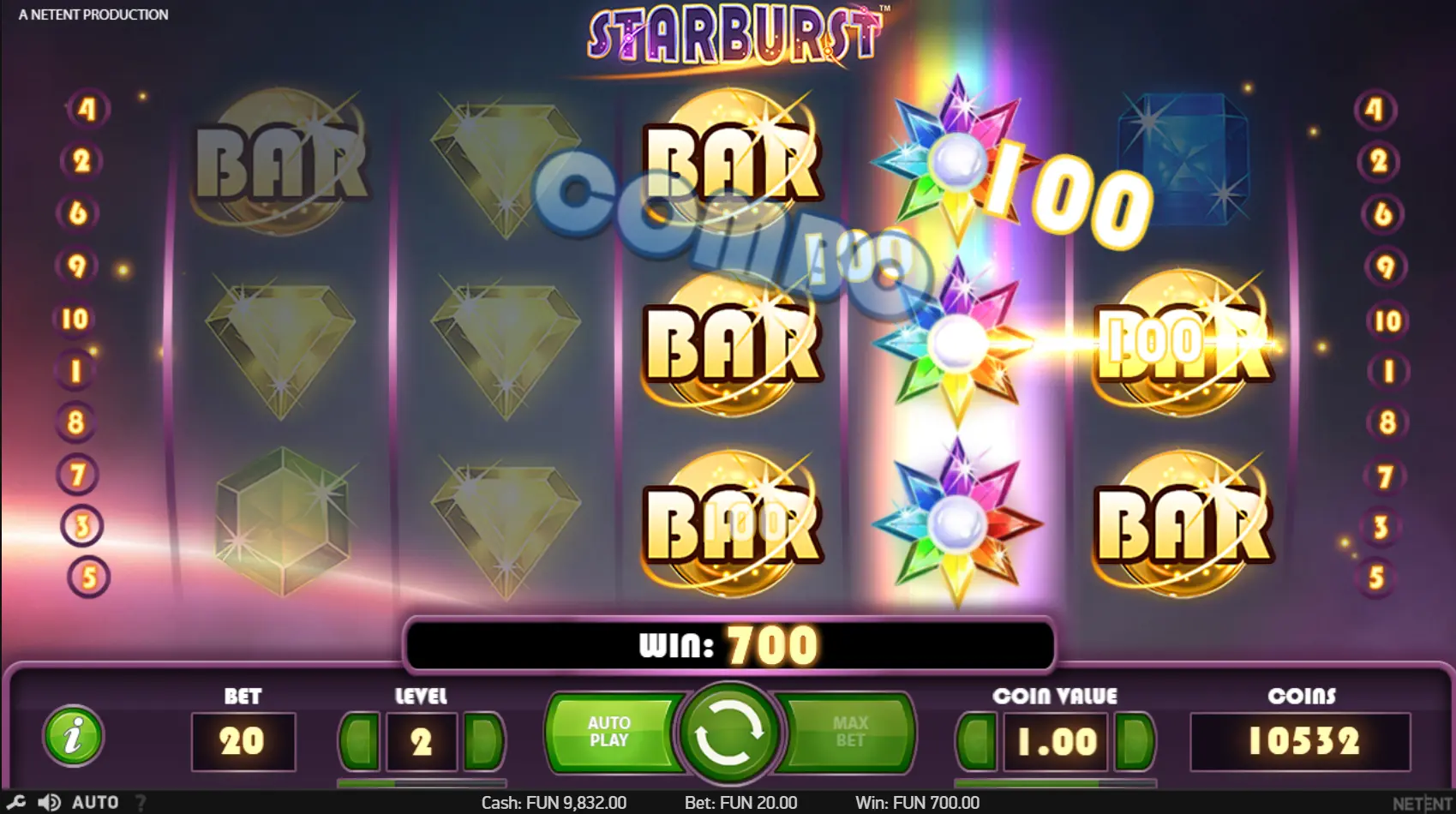 • Step 3: Trigger the Expanding StarburstWhen the rainbow Starburst wild lands on reels 2, 3, or 4, watch it expand to cover the entire reel while substituting for all other symbols to create a winning combination. The game’s ten paylines pay both ways, so winning combinations can form from left to right or right to left on active pay lines.